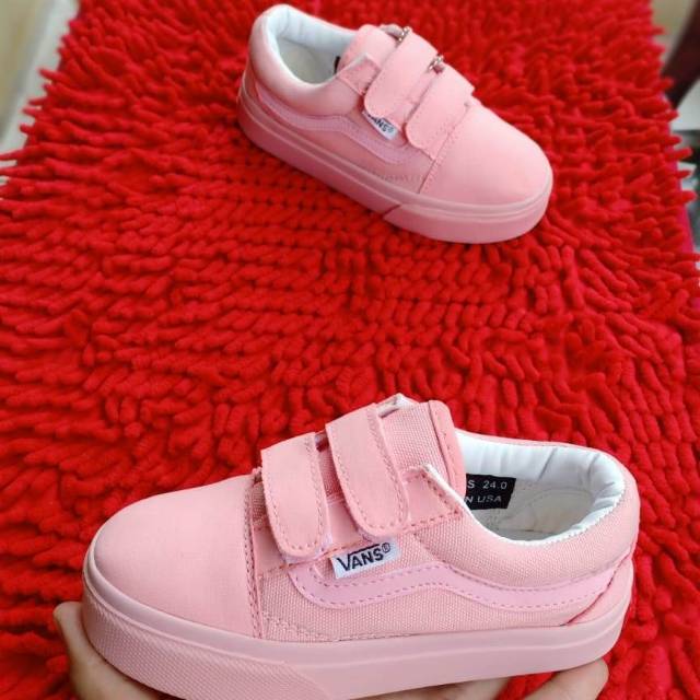 Sepatu Vans Anak Cewek Full Soft Pink Perekat Ukuran Kecil Shopee Indonesia