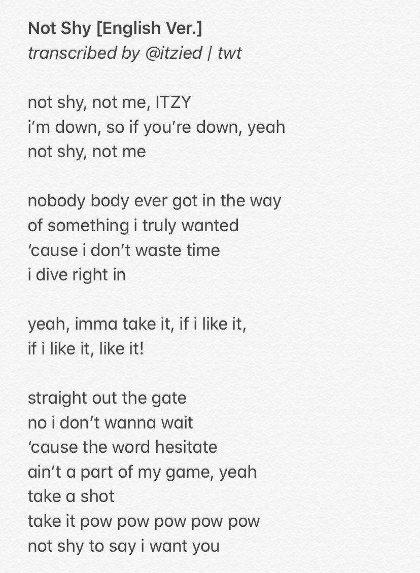 Caca On Twitter Itzy Not Shy Lyrics Itzy Notshy Https T Co Duqb5lo6a8 Twitter